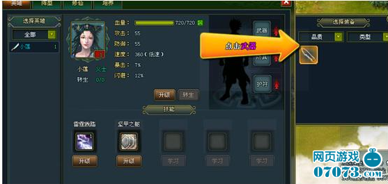 5.終于到主公發(fā)揮作用的時(shí)候了。給小蓮裝備武器、升級(jí)、強(qiáng)化裝備等操作都是要通過(guò)主公來(lái)完成的。咱也終于擺脫了吃軟飯的日子,真是不容易啊。