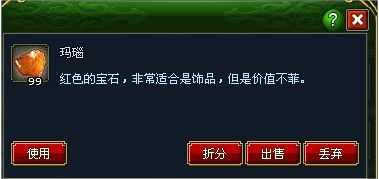 當(dāng)物品在包裹中時,玩家可以選擇對物品進行使用、裝備、出售、丟棄、拆分、批量出售等。