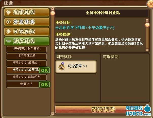 日常任務(wù):包括一般日常任務(wù),日常任務(wù)基本上每天都只能完成一次,極個別的每天可以完成多次,完成后可以獲得物品、經(jīng)驗等各種獎勵。