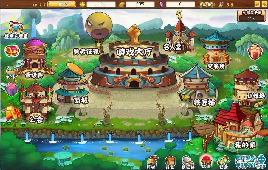 游戲主界面說明 進(jìn)入到游戲后,首先會進(jìn)入到游戲主界面。主界面中的各種建筑具有不同的功能: