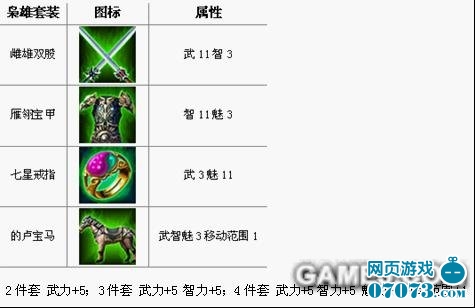 依據(jù)搭配的件數(shù)不同,套裝能夠觸發(fā)的屬性也不一樣。四件全湊齊的話武將的能力將產(chǎn)生質(zhì)的變化!