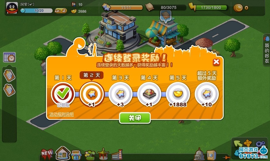 2、連續(xù)登陸天數(shù)越多,獎(jiǎng)勵(lì)越豐富,超過(guò)5天獎(jiǎng)勵(lì)最豐富。