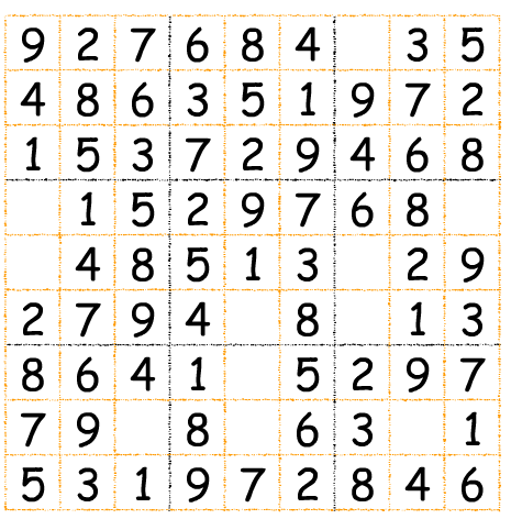 數(shù)獨的基本規(guī)則是:在每行、每列及每宮(黑線區(qū)分的3X3區(qū)域)內(nèi)填入不重復(fù)的數(shù)字1-9。