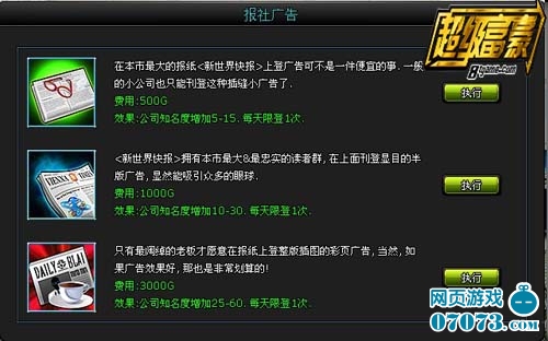 最近超級富豪大學(xué)專門為各公司董事長開設(shè)了MBA特別深造班,分為普通深造和高級深造,參加后公司的知名度和董事長能大幅度提高喔,總裁深造每天只能深造一次。