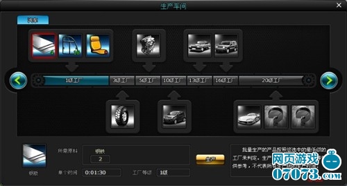 1、進(jìn)入工廠生產(chǎn):根據(jù)工廠等級(最高20級)的不同,生產(chǎn)的產(chǎn)品不同;等級越高產(chǎn)品值越好。