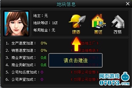 1、進(jìn)入“城市地圖”后,點(diǎn)擊任意標(biāo)注的“可租用”地塊;出現(xiàn)創(chuàng)建商店的選擇如圖: