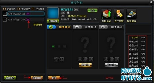 1)紅箭頭1:商店銷售狀態(tài)為“空閑”可選中此商店進(jìn)行銷售;