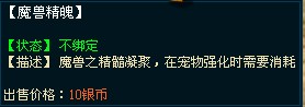 3) 煉化當(dāng)前寵物,根據(jù)寵物的品階、等級(jí),獲得魔獸魔核,根據(jù)煉化的寵物階級(jí)和等級(jí),獲得的魔獸精魄的品階也不同,分為1-9階。
