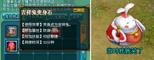看看包里有什么好東西!5級的時候除了一瓶幫助玩家自動回血的生命之源外,還有個拉風(fēng)的變身道具哦;