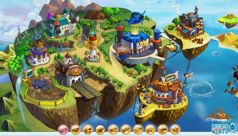 進入到游戲后,首先會進入到游戲主界面。主界面中的各種建筑具有不同的功能: