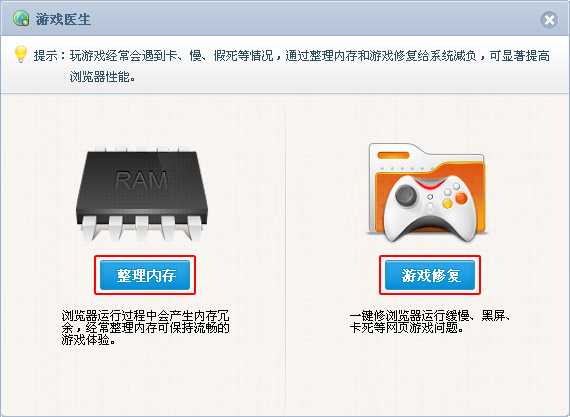 點(diǎn)擊工具欄“醫(yī)生”,可一鍵修復(fù)各種瀏覽器問(wèn)題;清理內(nèi)存,解決加載卡死,優(yōu)化游戲體驗(yàn)。