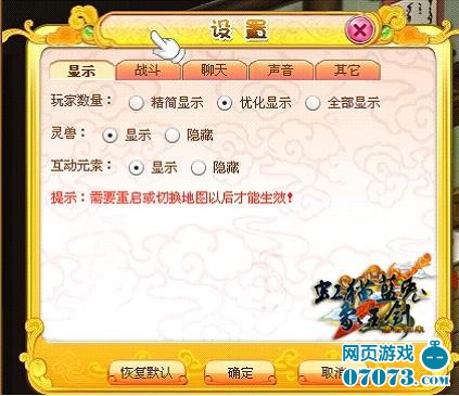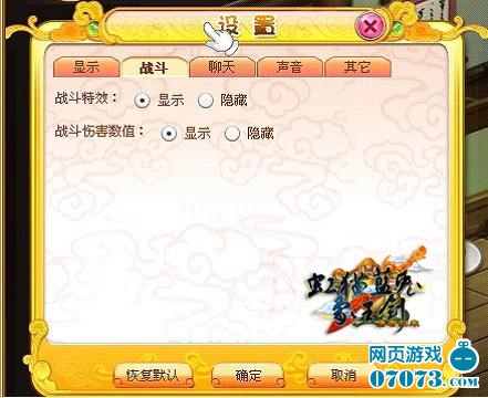 戰(zhàn)斗:戰(zhàn)斗特效顯示、隱藏,系統(tǒng)默認(rèn)是顯示的。