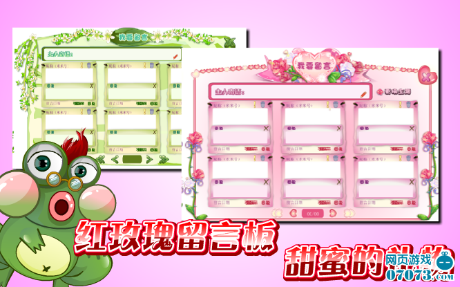 包子青蛙對小花仙們的花園留言板總是很有熱情,最近他又請愛芙和賽拉幫忙,為小花仙們做出了新的留言板圖案,迎春花留言板真是有春天的味道呀!對了,奇妙花寶還可以替主人換上甜蜜的紅玫瑰留言板喲!