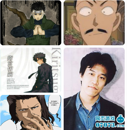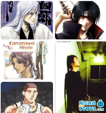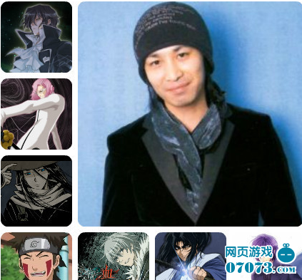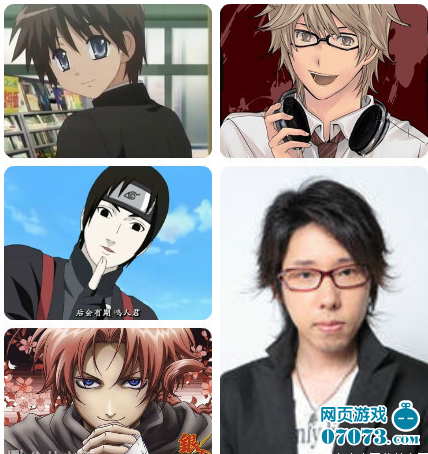 CV:石川英郎《火影忍者》——宇智波鼬;《死神》——浮竹十四郎;《金色琴弦》——金澤纮人;《灌籃高手》——森重寬