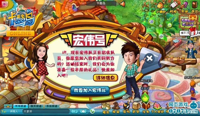 《卡酷島Online》是卡酷島兒童社區(qū)網(wǎng),簡(jiǎn)稱卡酷島的同名游戲,是一款以?shī)蕵沸蓍e、交友學(xué)習(xí)為一體的魔幻卡通兒童社區(qū)。以卡酷衛(wèi)視超級(jí)明星主持人(彩虹姐姐、韋至哥哥、慧玲姐姐、瘦不了)作為NPC與小朋友進(jìn)行互動(dòng),配以華麗精致的3DQ版魔幻場(chǎng)景,多寵物集體互動(dòng)模式,多樣的社區(qū)系統(tǒng),小朋友在游戲過程中通過活動(dòng)、任務(wù)、小游戲等與動(dòng)漫名星互動(dòng),隨著游戲劇情發(fā)展融入角色,掌握各方面知識(shí),盡享童年多彩樂趣。