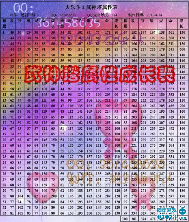 大樂斗2武神塔屬性成長表 攻略