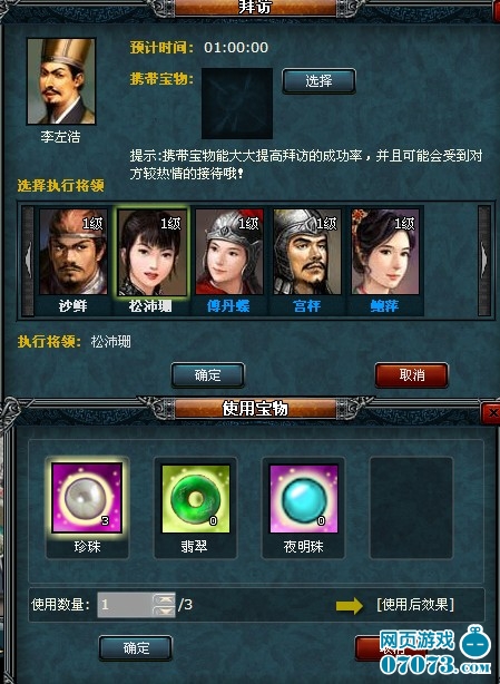 玩家進(jìn)入京城,可以與NPC進(jìn)行對話進(jìn)行拜訪,拜訪有幾率獲得進(jìn)貢單、各類寶物、各類材料等,以獲得進(jìn)貢單為主。拜訪需要指定武將進(jìn)行執(zhí)行,每天拜訪次數(shù)與玩家的爵位、官職等級有關(guān),拜訪時間為1小時。