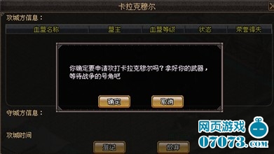 符合申請(qǐng)城池戰(zhàn)條件(血盟5級(jí))的血盟盟主前往所要挑戰(zhàn)的城池城門NPC處進(jìn)行“攻城”登記(與城池防守血盟結(jié)盟的血盟不可登記“攻城”),申請(qǐng)攻城的血盟需交納:血盟榮譽(yù)值3000、盟主令旗一面。