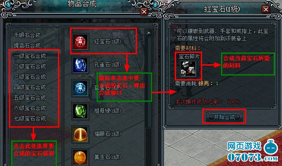 寶石的合成是有成功概率的,越高級的寶石合成成功率越低,寶石合成失敗后,系統(tǒng)將扣除2個合成材料,返還1個合成材料給用戶;寶石合成成功后,系統(tǒng)將扣除所有合成材料。