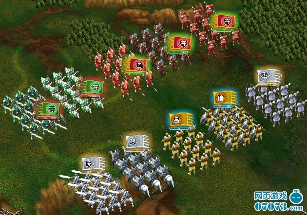 我們看到,烏程刺史的隊伍2步兵+2騎兵+1弓兵,并且騎兵分別安插在步兵和弓兵之間,這就導致在布陣的時候很郁悶。首先信陵君復制對方的妙手回春,這一點毋庸置疑。然后用弓兵擊破對方的弓兵,呂不韋對付火攻部隊。由于兵種相克,琴清不能對應剩下的步兵,所以只能和騎兵對陣,而這個時候,如果是玄武召喚,則剩下趙姬,如果是白虎召喚,則剩下龐涓。但無論哪一個,他們的位置都在最左側(cè)。