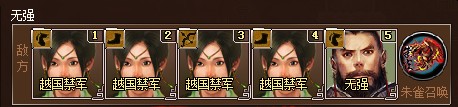 首先最容易確定的是信陵君的位置,妙手回春的騎兵位,毫無疑問。然后是李牧的位置,李牧的乘勝追擊正適合對付火攻的金蟬脫殼,因此,李牧放在左側(cè)第二個。而如果你的琴清防御夠好,則可以放在弓兵的位置限制弓兵,用呂不韋對付剩下的一個火攻部隊。當(dāng)然,余下的趙姬或者龐涓則對付無強。
