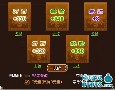 而如果是非RMB玩家還可以用榮譽(yù)值去掉多余的牌,也和元寶一樣,每去掉一張牌,所耗費(fèi)的榮譽(yù)值就會增加一半。