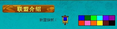 14、玩家修改聯(lián)盟旗幟,通過(guò)(聯(lián)盟→聯(lián)盟管理→聯(lián)盟介紹)點(diǎn)擊顏色塊操作。