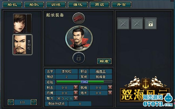 怒海風(fēng)云的角色系統(tǒng)將基本游戲的角色屬性都包括在內(nèi),其中還包括了戰(zhàn)術(shù)的技能屬性,總體來說角色系統(tǒng)沒有什么大的亮點,還算是正常的。