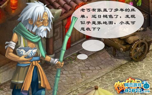 每天有三次寶圖任務(wù)都在長安城洪七那里領(lǐng)取,別看他是一介乞丐,給的東西也是破布一塊,不過你可得收好嘍,因為他還會附贈你一把金鏟子。有了這兩樣?xùn)|西,就可以去尋寶探秘了,豐厚保障可正等著你呢。