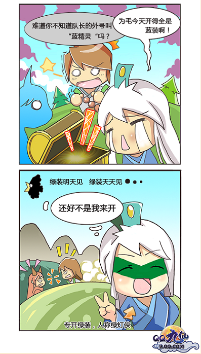 QQ九仙連載四格漫畫二 藍(lán)精靈