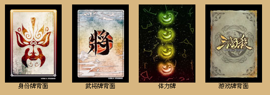 身份牌10張:1主公,3忠臣,4反賊,2內(nèi)奸;武將牌25張;游戲牌104張+EX游戲牌4張;體力牌10張。