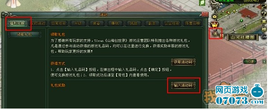 禮包領(lǐng)取方式:登錄游戲,點擊游戲右上角的【活】字按鈕,選擇【福利兌換】,點擊【輸入禮品碼】按鈕,在彈出框中輸入禮品碼,點擊【確定】按鈕,便可獲得游戲禮包。