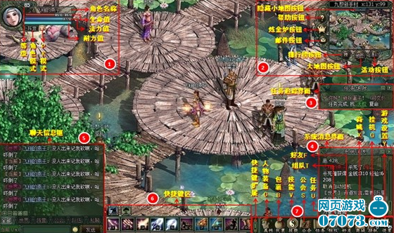 6、 動(dòng)作快捷欄 您可以將技能、藥品、動(dòng)作圖標(biāo)等拖放在其中的空格上,然后按相應(yīng)的鍵盤按鍵或鼠標(biāo)點(diǎn)擊圖標(biāo)即可使用。