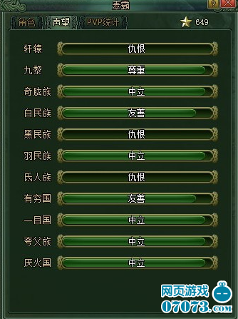 按快捷鍵“C”鍵打開角色屬性界面,再點擊聲望頁面即可查看當前自身各勢力的聲望值。
