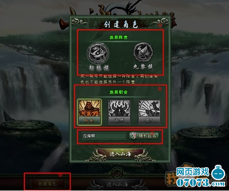 3號紅框處在名稱欄內(nèi)輸入角色名點(diǎn)進(jìn)入山海既可創(chuàng)建角色,如果還沒有想好要用的角色名可以點(diǎn)隨機(jī)起名,選擇一個自己喜歡的。
