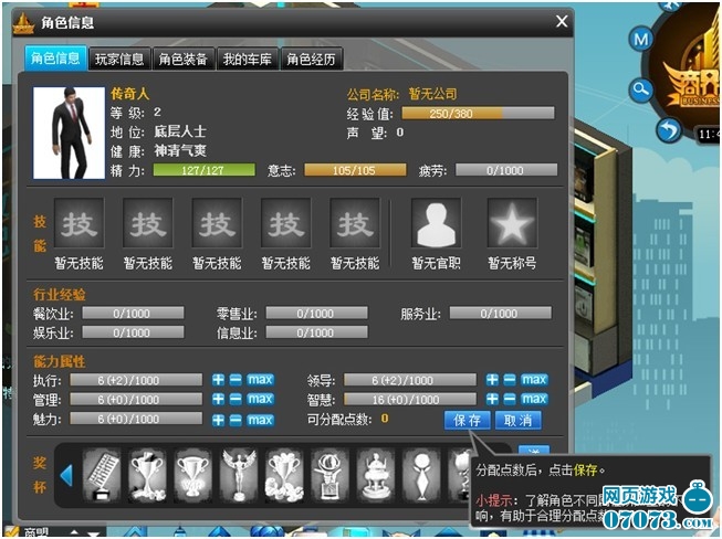 在角色信息面板中,將分配點(diǎn)數(shù)分配到您的角色各項(xiàng)屬性上,點(diǎn)擊“保存”即可。