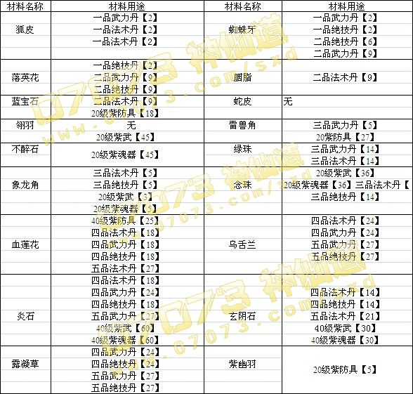 神仙道的材料種類繁多,而且做一件裝備動輒需要好幾十,所以一大堆材料占滿了玩家的倉庫背包,最可氣的是玩家怕用的時候欲哭無淚,還不敢扔。所以以下整理了所有60級以下的材料用途,制成表格以供大家參考。60級以上的高級材料攢還來不及,更不要說扔了,就不進(jìn)表了。