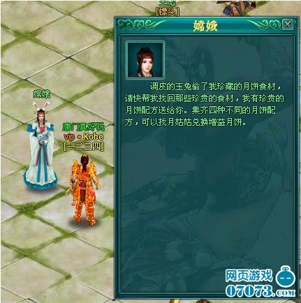 1、通過蘇州城嫦娥接取收集月餅食材的任務(wù),分別為:收集糖漿皮、收集果仁、 收集芝麻、收集核桃。