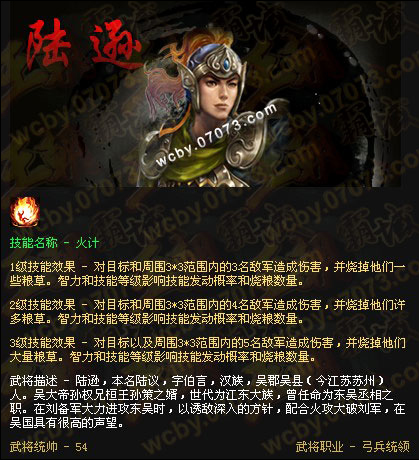 陸遜火計(jì)技能:技能效果對(duì)目標(biāo)和周圍3*3范圍內(nèi)的3名敵軍造成傷害,并燒掉他們一些糧草。智力和技能等級(jí)影響技能發(fā)動(dòng)概率和燒糧數(shù)量。為什么要說這三名武將好呢,這三名武將是弓兵,帶弓兵有加成,又是群攻武技,前期打賊城為了搶經(jīng)驗(yàn),最好還是給他們帶騎兵。后期帶戰(zhàn)車在后排轟炸,爽翻天。與紫將比較,亦不逞多讓。