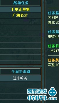 任務(wù)線路:過(guò)東嶺關(guān)(占領(lǐng)東嶺關(guān))——占領(lǐng)洛陽(yáng)(占領(lǐng)洛陽(yáng))——占領(lǐng)汜水關(guān)(占領(lǐng)汜水關(guān))——占領(lǐng)滎陽(yáng)(占領(lǐng)滎陽(yáng))——大戰(zhàn)秦棋(占領(lǐng)滑州黃河渡口)——巧遇孫乾(抵達(dá)黎陽(yáng))——斬蔡陽(yáng)(在古城擊敗蔡陽(yáng))——相會(huì)關(guān)家莊(抵達(dá)關(guān)家莊)——擁兵南下(抵達(dá)汝南)。