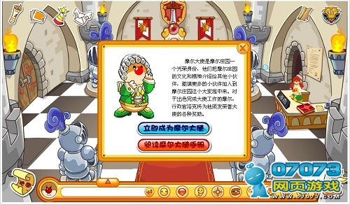 摩爾大廳:點(diǎn)擊中央寶座上方的劍,可以查看摩爾歷史。點(diǎn)擊洛克旁邊的書(shū)籍,可以閱讀摩爾大使手冊(cè),點(diǎn)擊洛克,還可以接到成為摩爾大使的任務(wù)。摩爾大廳和摩爾地下室、城堡二樓相連。