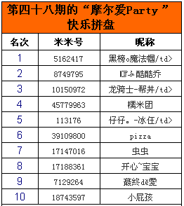 第四十八期的“摩爾愛Party”名單揭曉