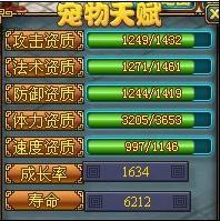 5.一個寵物最多可以煉化10次,如果使用神石道具則可以提高道具指定的資質(zhì),如果沒有放入道具則隨機提高5項資質(zhì)中的隨機一項5點。