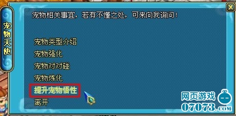 1.您現(xiàn)在可以在“寵物天使”NPC處使用精靈寵物來提升寵物的悟性。