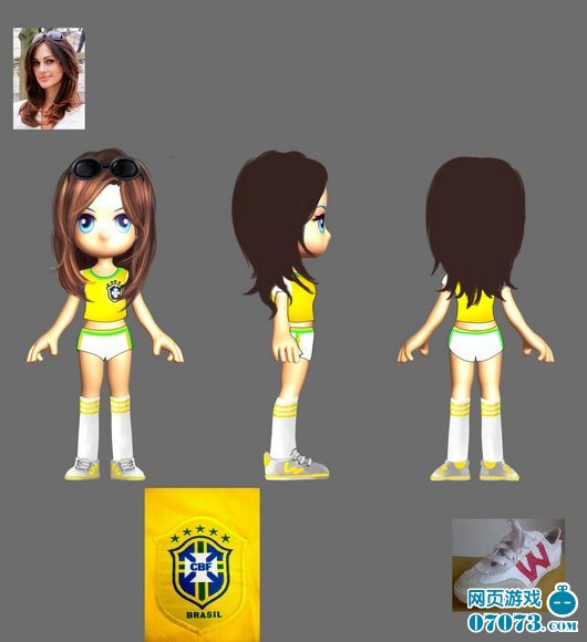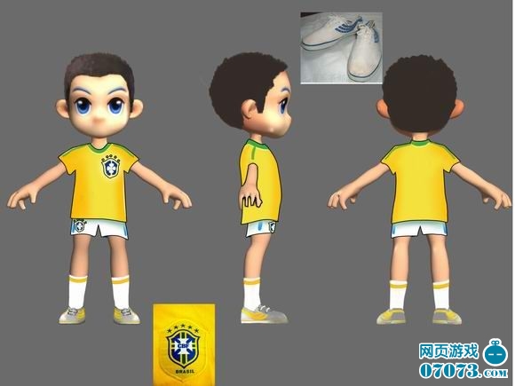 圖為巴西女足的世界杯隊服,依舊是充滿美麗黃色的球服,與男足的不同之處體現(xiàn)在女足的露臍裝。黃色的緊身球衣,時尚的緊身短褲,綠色的邊腳,張揚不羈,散發(fā)出女性無窮的魅力。飛天西游中世界杯女隊員動作攻擊為左邊胳膊夾住足球,右腳踢人,魔法動作為左邊胳膊夾住足球,向側上方揮動右臂。