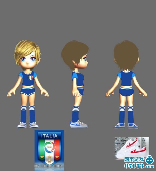 圖為世界杯意大利足球女隊的時裝,同男隊一樣的藍色,也有著男隊一樣的堅韌。但是也不失時尚的因素,緊身的露臍裝,貼身而舒適的球服,在賽場上看到的不僅是女足的球技,更要追逐的是賽場上奔跑的美麗天使。