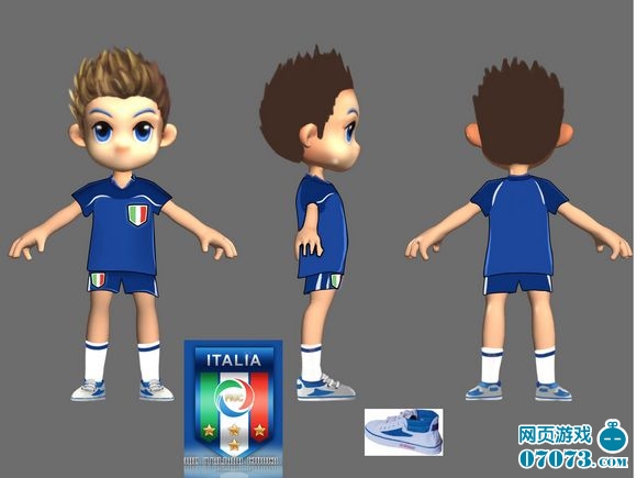 圖為世界杯意大利隊男足的時裝,深藍色的球服,藍色的球鞋,凸顯出了胸前的意大利國旗圖案。藍色代表著憂郁,所以代表意大利男足的深不可測,在球場上奔跑的藍色男子,有的是一顆堅韌不拔的心,人們想要看到的是他們憂郁的臉卻從不放棄的身影。