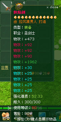 從上圖我們不難看出,每次強(qiáng)化成功之后“熾焰劍”的攻擊屬性都得到了提升。當(dāng)裝備強(qiáng)化到七星以上,每提升一星更能獲得大量的屬性加成,從下圖就能清楚的分辨出來(lái)。