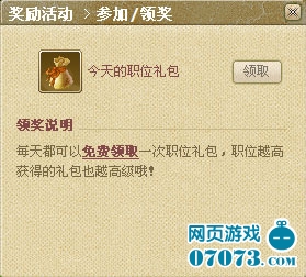 只要每天登錄游戲,哪怕什么都不做,就會每天收到我們給你提供的日常禮包,并且隨著在游戲中職位的提升,禮包獎勵的內(nèi)容也會發(fā)生變化。并且,我們在一周的每一天,都有豐富的界面活動等你來玩,玩的好也會收到我們的禮物。
