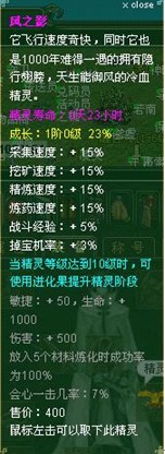 傳說風(fēng)之影之所以得名風(fēng)之影是因?yàn)樗w行速度奇快,在你還沒有反應(yīng)過來的時(shí)候她就已經(jīng)消失在奇妙的幻境世界中,同時(shí)它也是1000年難得一遇的擁有隱行翅膀,天生能御風(fēng)的冷血精靈。雖然它是冷血精靈但是只要你降伏他并成為他的主人。他就會(huì)給你帶來意向不到的驚奇。心動(dòng)不如行動(dòng)!快來兌換吧!